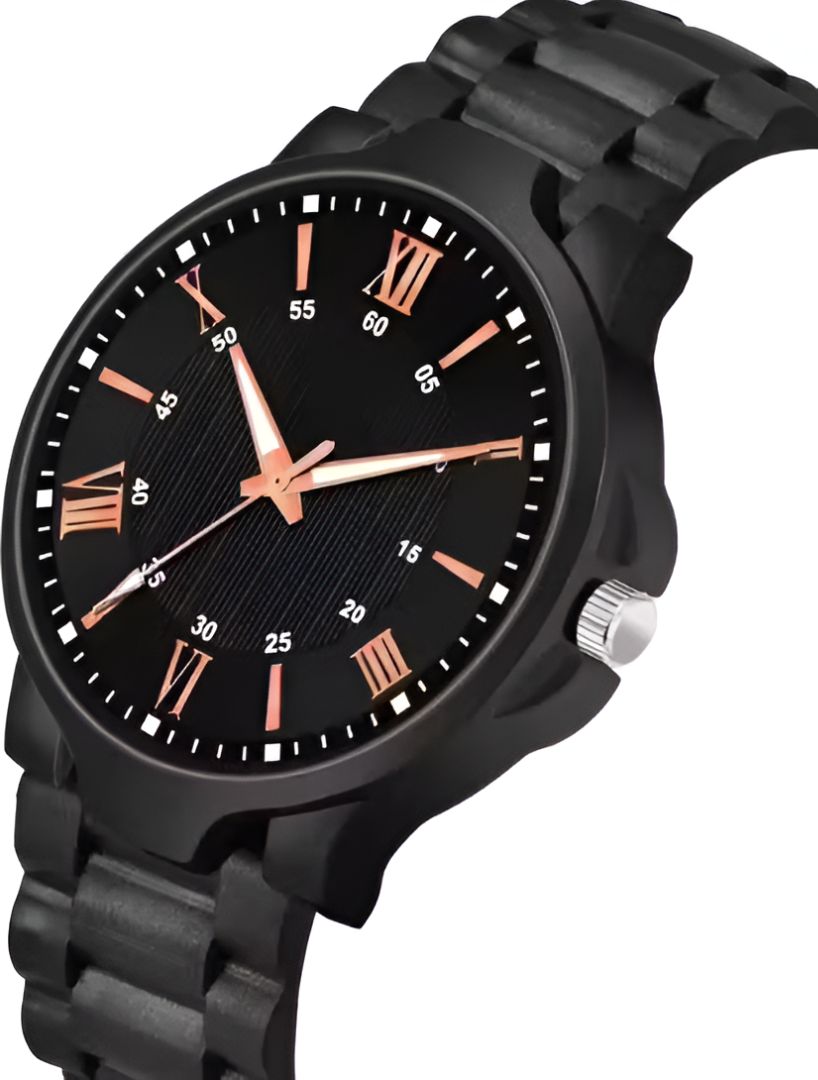 Redefine your fashion statement with the Elegant Black Analog Watch. Featuring a solid round dial in a bold black finish, paired with a premium PU strap and stainless-steel bezel, this timepiece ensures durability with a modern edge. Powered by quartz movement and battery operation, it provides accurate timekeeping without hassle.